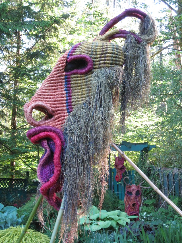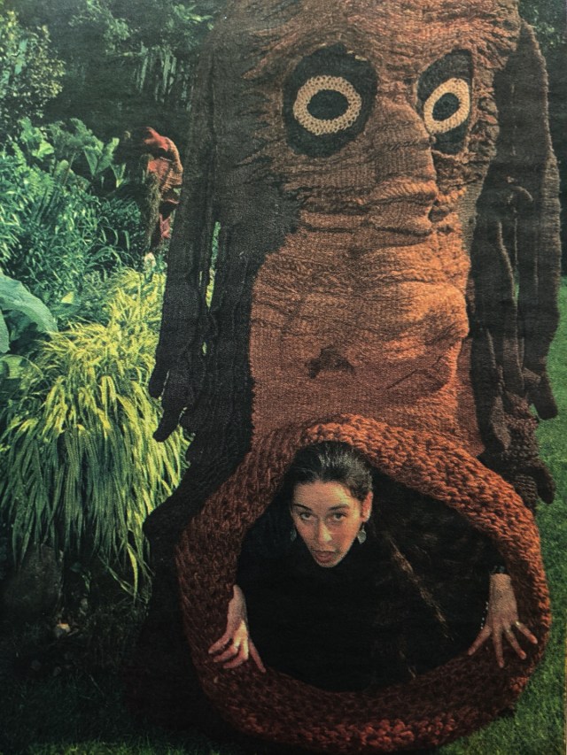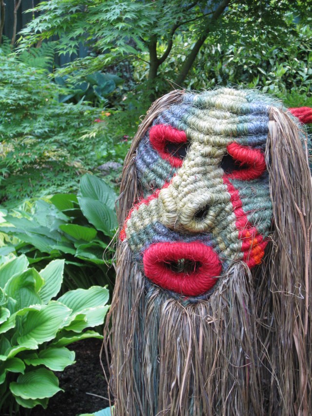 Originally a visual artist specializing in fibre arts, David Secunda transformed into a performance artist. Inside giants masks or puppets David and co-performers sprung unexpectedly into the audience’s view. In 1978 at the International Sculpture Symposium, wearing giant sisal masks, they approached Harbourfront Theatre in a war canoe. This moment at the Sculpture Symposium inspired David to continue experimenting with woven, crocheted, or knotted masks and giant puppets for performance pieces. These physical theatre works were presented across Canada and internationally.
